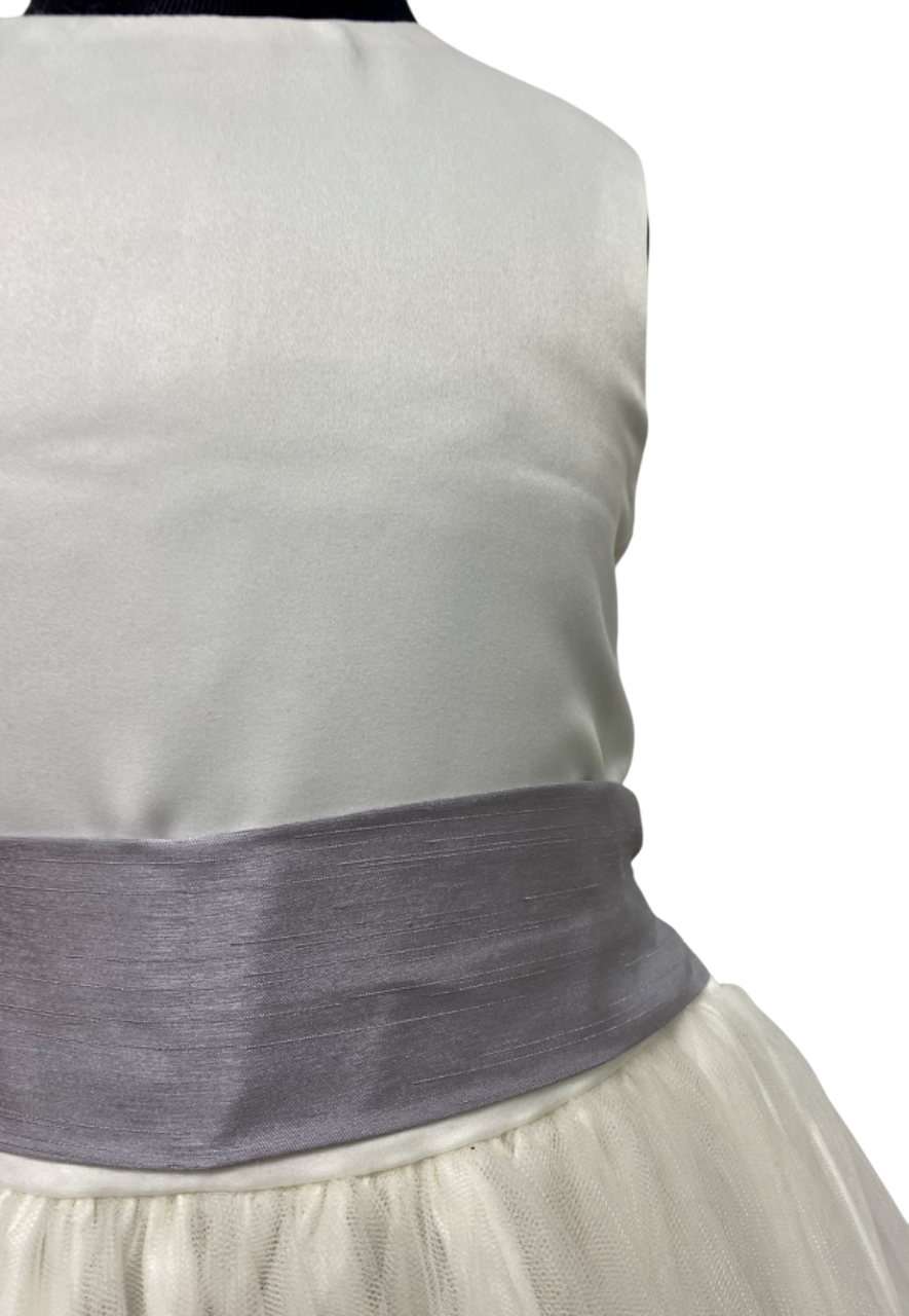 Girls ivory flower girl dress w/ grey sash and bow, detachable bow so you can change bow.